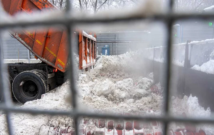 Снег сбрасывают в приемный бункер, оснащенный сепараторами-дробилками для измельчения, затем он попадает в специальный отсек, куда подается сточная вода температурой не ниже 10 градусов. Весь мусор оседает в песколовках, талая вода отводится обратно в канализационный коллектор и уходит в очистные сооружения, где проходит полный цикл механической и биологической очистки.