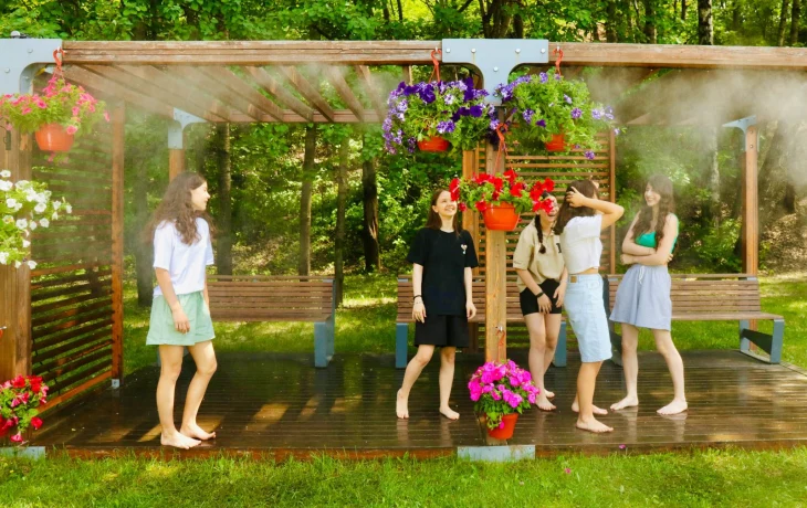 Эти конструкции позволяют снизить риск тепловых ударов и других проблем со здоровьем, связанных с перегревом. Они оснащены системой туманообразования - мелкодисперсного распыления воды, благодаря чему происходит равномерное охлаждение пространства.