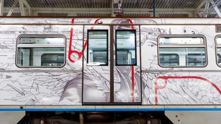 Внутри вагонов представлены иллюстрации первых автомобилей и паровозов, тракторов, новейшего российского пассажирского самолета МС-21 и атомного ледокола «Арктика». Поезд будет курсировать на Арбатско-Покровской линии в течение шести месяцев.