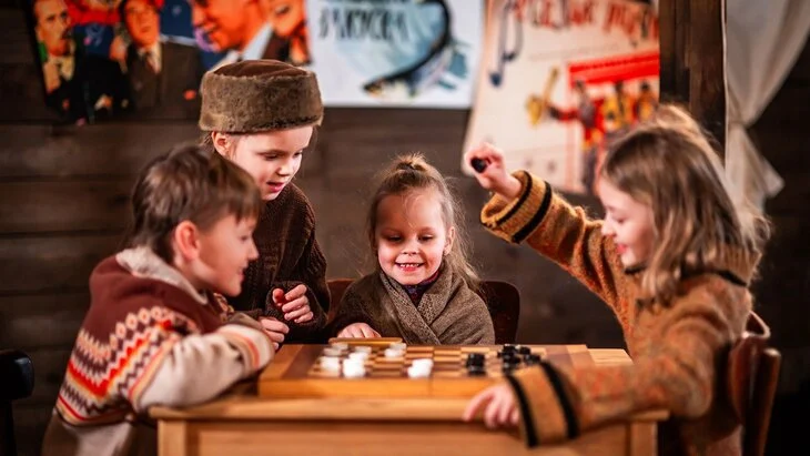 Кроме того, дети и подростки могут принять участие в постановочных съемках по мотивам советских кинолент "Морозко", "Джентльмены удачи", "Девчата", "Варвара-краса, длинная коса", "Тот самый Мюнхгаузен" и других.