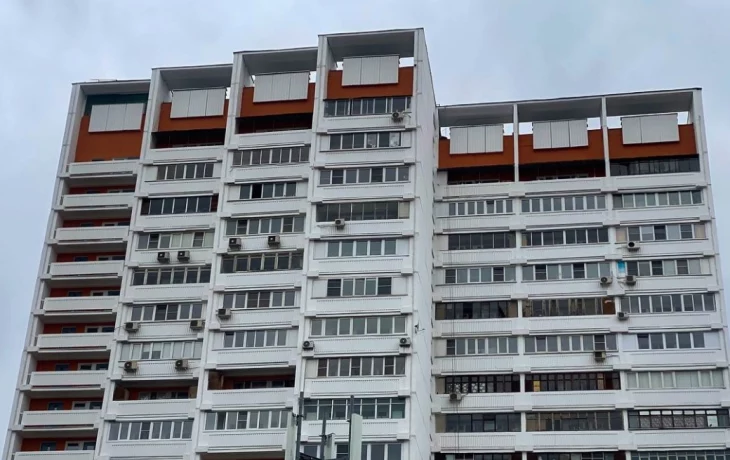 После подготовительных работ поверхности окрасили, выделив бетонные экраны лоджий белым цветом, а их фронтальные стены - оттенком «коричневая желтофиоль». Помимо этого, в порядок привели керамические напольные покрытия, стены, ограждения, плиты и отливы, а на завершающем этапе обновили цоколь, выполнили устройство новой отмостки и ремонт откосов.